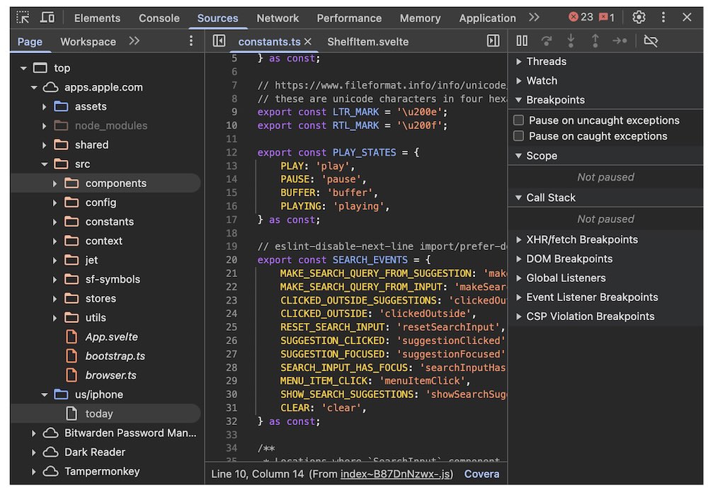 蘋果新版 App Store 網頁於日前正式上線,新增不同平台與應用分類專區,並改善搜尋體驗。不過這次疏忽讓外界能夠直接取得網站完整結構,包含 Svelte 與 TypeScript 的原始碼、UI 元件、狀態管理邏輯、API 整合及導向設定等程式資料。